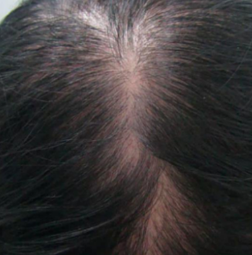 - 雄激素性脱发。 最为多见,既往称为脂溢性脱发或早秃,是雄激素依赖的遗传性疾病,表现为头顶头发持续性密度降低,男性还会表现为发际线后移。